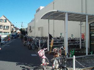 「マルエツ 真中店」の屋外駐輪場。無料ですが、ラックも屋根もありません。